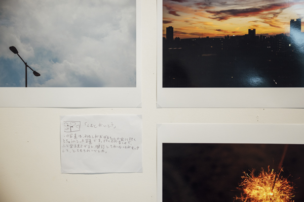 そんな折、ぼくの展覧会が開かれていた7月下旬、ひとりの女の子がカメラを首からさげてギャラリーにやってきました。小学5年生の高橋ありさんです。話を聞くと、今年の自由研究は「写真」にするのだそう。親にカメラを買ってもらって、毎日持ち歩くうちに、写真がとてもおもしろくなってきたと言います。その場で、彼女が撮った写真をモニターで見せてもらいました。すると、そこには想像以上にうつくしい世界が広がっていて、素敵な時間が次々と写し出されていました。「これ、展覧会にしてみんなに見てもらったらどう?」と聞いてみると、彼女は「展覧会がやりたい!」と目を輝かせました。「よし、じゃあ決定!自分で展覧会のタイトルやテーマを決めて、案内状もつくってみようか」と。こうして、夏休みの自由研究を兼ねた、一日だけの写真展を開催することになったのです。