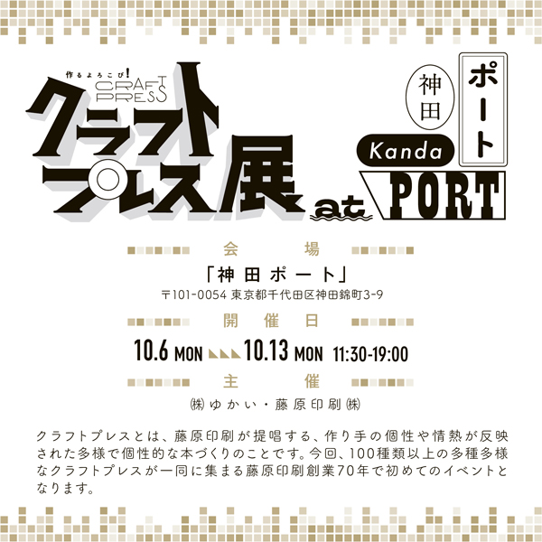 2025年10月6日(月)より、神田ポートでは、藤原印刷とゆかいのコラボイベントとして、「クラフトプレス展 at 神田ポート」を開催いたします。